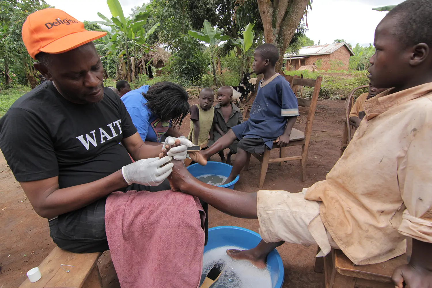 In parts of rural Uganda, jigger infestations (tungiasis) affect some of the most vulnerable: children, the elderly, and those living in extreme poverty. Jiggers are tiny sand-fleas that burrow into the skin, often the feet, causing swelling, pain, infection, and in severe cases, disability. Many who suffer are unable to walk to school, work, or fetch water.Tragically, these infestations are sometimes misunderstood as a curse. This stigma often leads to isolation and neglect, worsening the cycle of poverty and illness.